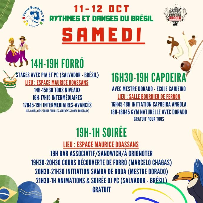 Ce weekend est également ouvert à tous ceux qui souhaitent découvrir les rythmes du brésil, au travers de stages de découvertes et animations, ça va être top ! Venez avec vos amis 😉